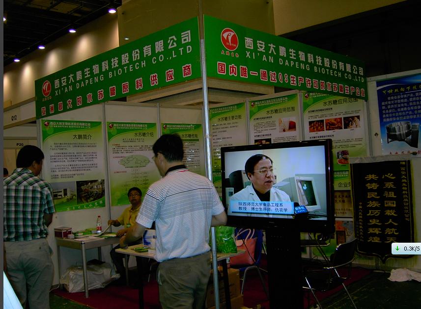 參加中韓貿洽會 走向國際大市場 參加青島食品配料展 尋求發展新商機 水蘇糖,我要認識你! 大鵬生物參加2012中國國際輕工消費品展覽會 恭賀大鵬生物榮獲中國輕工展覽科技創新獎 大鵬生物參加第五屆中國國際飲料工業科技展 第四屆中國營養產業高層論壇開幕 大鵬公司董事長與公眾營養健康中心主任于小冬在水蘇糖聯誼會上 高鵬董事長在第四屆中國營養產業高層論壇上 公眾營養改善OLIGO項目啟動儀式